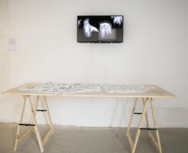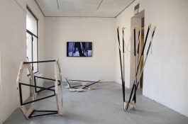 UK based artist Lara Torres asks the viewer to stop and reflect about how we make fashion in the future in her video-essay Unmaking. The visual narrative is composed of a series of performative gestures, such as un-weaving, un-sewing and tearing apart in order to become aware of the symbolic meaning of the thread, of the fragment, and of all what remains behind as a material trace of human existence. In a similar way Anna Sophie Berger’s work She Vanished 1 evokes absence, loss, and generally the state of moving away while Ana Rajčević’s work questions possible new beginnings: her wearable sculptures in the form of long horns invoke both ancestral and futuristic dimensions. Kate Langrish-Smith pushes the notion of wearability and functionality even further. Her body-related-sculptures function as enigmatic performative devices which create a specific choreography of the movement and body-posture, inviting and teasing spectators to interact with them. By means of an artistic analysis Manora Auersperg reflects on the exhibition itself. She traces the spacial context in situ whilst transforming a textile surface by pulling out threads. Whereas the given structure of the fabric dissolves, notes materialize in a different medium.