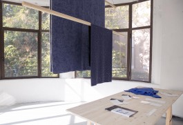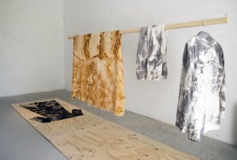 Several artists focus on the potential of materials. For her collection Excuse My Dust Christina Dörfler-Raab together with artist and performer Jasmin Schaitl experiments with different dying processes using destructive and corrosive substances, while Afra Kirchdorfer creates modular systems composed of ribbons and geometrically cut pieces of cloth which can be endlessly combined and recombined around the body. Assembling the work becomes a playful action of re-designing as well as rethinking the very notion of ready-to-wear. Graphic designer Maximilian Mauracher will work with translation of graphic signs/textures to textiles, realizing a new site-specific installation.